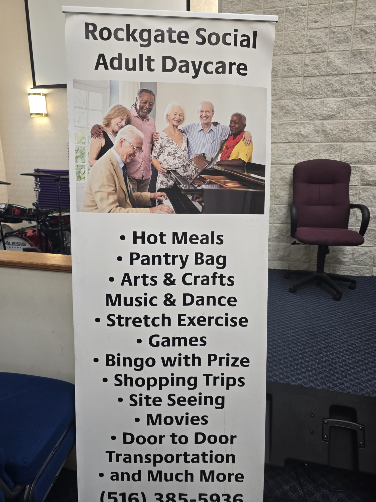The facility is conveniently located in Westbury, New York, making it ideal for family members to drop off their elderly parents in the morning and pick them up after their workday. Rockgate Social Adult DayCare is designed with working families in mind, with 12-hour support extending from 6:30 a.m. to 6:30 p.m. Brooklyn location: Monday, Wednesday, & Friday. Westbury location: Tuesday, Thursday & Saturday. This helps to alleviate the stress of rushing to pick up parents and to accommodate unexpected, late meetings at work.